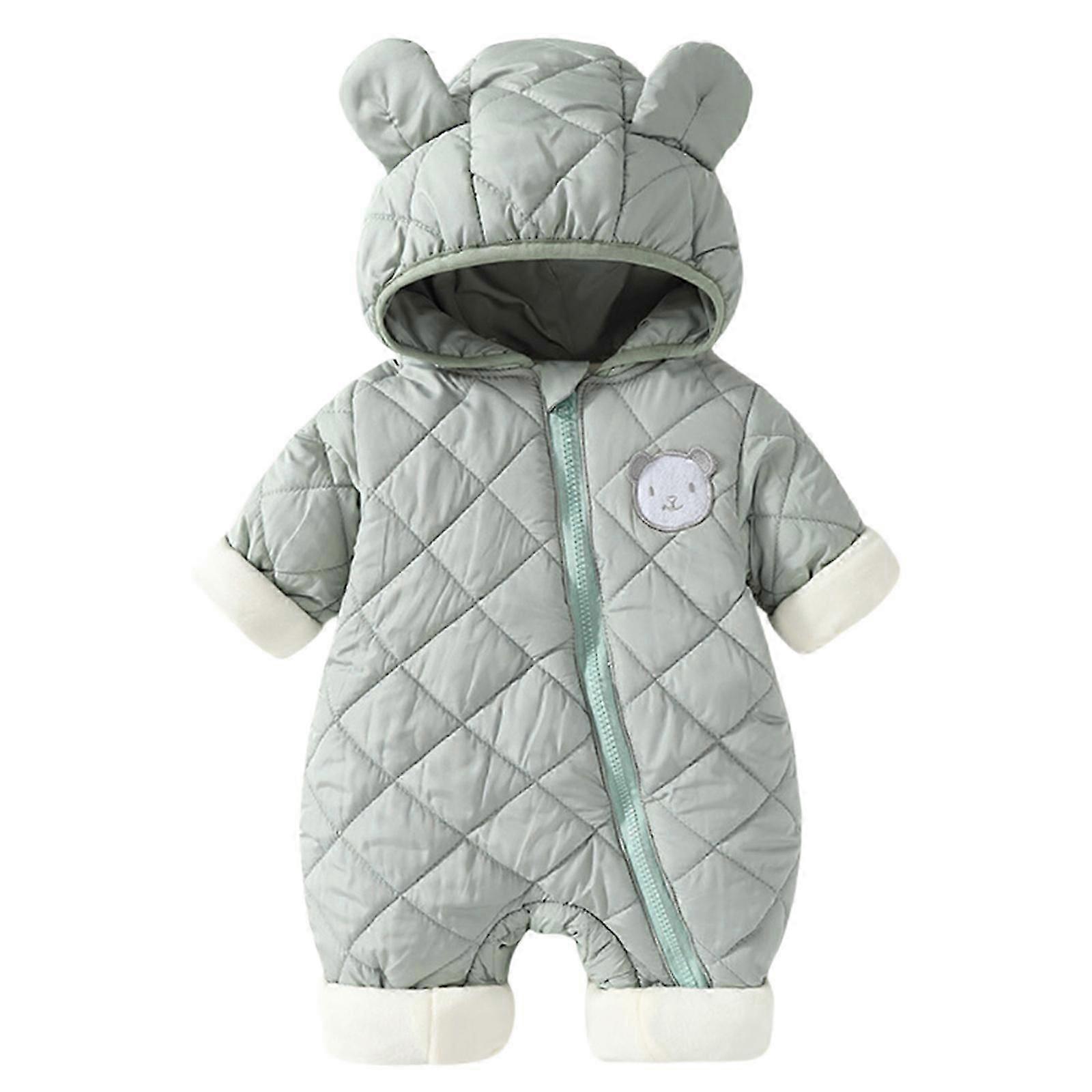 Features: Keep your little baby cosy and warm with our winter newborns baby romper, unique hooded designing, protect against the cold. Craft from quality padded cotton & polyester fiber, this baby romper is soft, durable, and resistant to fading or pilling, ensuring long time wear through multiple season. Designed for infants aged 0-36 months, provides comfort for both baby boys and girls, offering gentle protections for delicate skin. Perfect for outdoor adventures or everyday indoor comfort during autumn, and winter, which ensures your baby stays warm and stylish in any setting. Available in classical solid color, our baby clothing making it excellent choice for parents seeking reliable and fashionable infant wear. Specifications: Fabric: Polyester+Padded Cotton Color: refer pictures to selection please Size: 66, 73, 80, 90, 100(Chinese Size, Follow the Size Chart to Selection Please) Size:66 for 0 to 3 Month Length:54cm(21.26inch) Waist:28cm(11.02inch) Hip:31cm(12.20inch) Size:73 for 3 to 6 Month Length:58cm(22.83inch) Waist:29cm(11.42inch) Hip:32cm(12.60inch) Size:80 for 6 to 12 Month Length:62cm(24.41inch) Waist:30cm(11.81inch) Hip:33cm(12.99inch) Size:90 for 12 to 18 Month Length:66cm(25.98inch) Waist:31cm(12.20inch) Hip:34cm(13.39inch) Size:100 for 24 to 36 Month Length:70cm(27.56inch) Waist:32cm(12.60inch) Hip:35cm(13.78inch) Package Includes: 1Pc Baby Autumn Winter Cotton Padded Romper note: Please allow 1-2cm errors due to manual measurement. Please allow for slight color differences due to different display resolution.