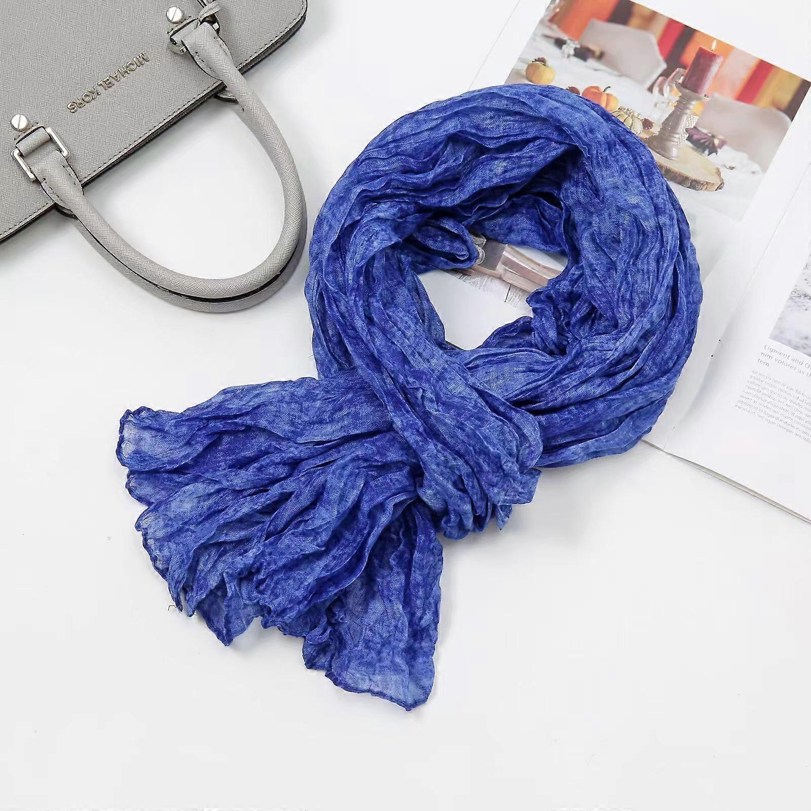 Crinkled Solid Green Cotton Linen Scarf Lightweight Autumn Winter Shawl Wrap Unisex Warmth Keeping Long Rectangular Scarf