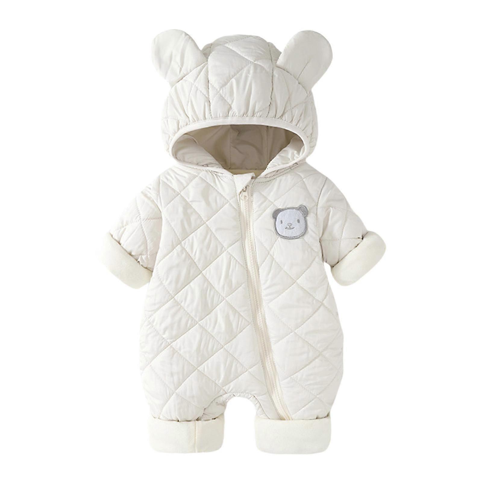 Comfortable Hooded Baby Romper Zippered Jumpsuit Cartoon Bear Thicken Warm Outwear Windproof for Infants Toddlery