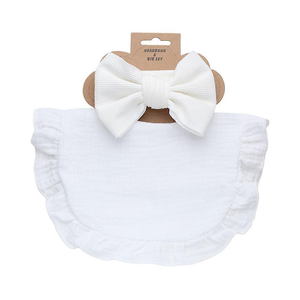 2Pcs/Lot Ribbed Baby Bibs Hair Bows Headbands for Baby Boys Girls Ruffled Flower Saliva Towel Feeding Burp Cloth Scarf Headwear