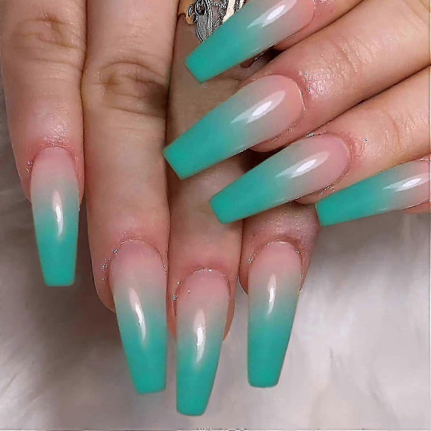 24 Pcs Long Fake Nails Glue On Nails, Butterfly False Nails With Gluex