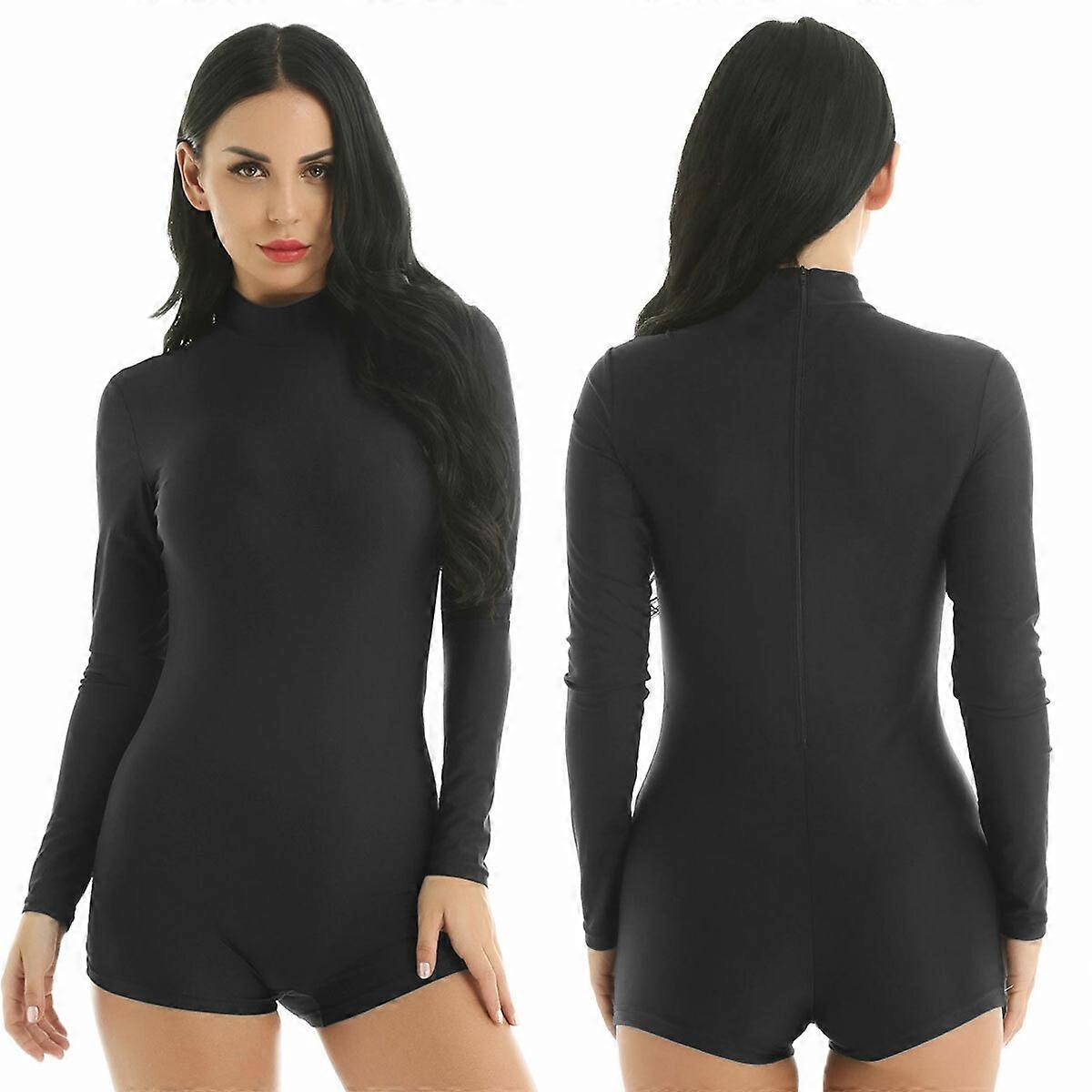 Womens Mock Neck Ballet Leotard Bodysuit Gym Long Sleeve Leotard Dance Top Shirt