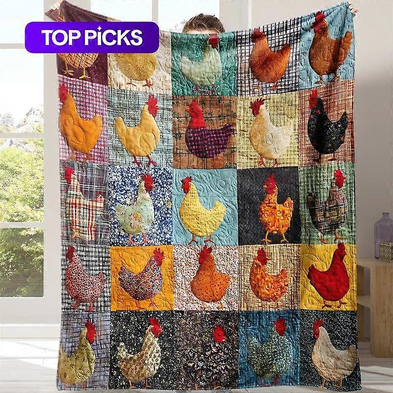 Cute Chicken Pattern Fleece Blanket, Fluffy Blanket, 1 Count Soft Comfortable Throw Blanket, Warm Nap Blanket for Home Office Travel Camping