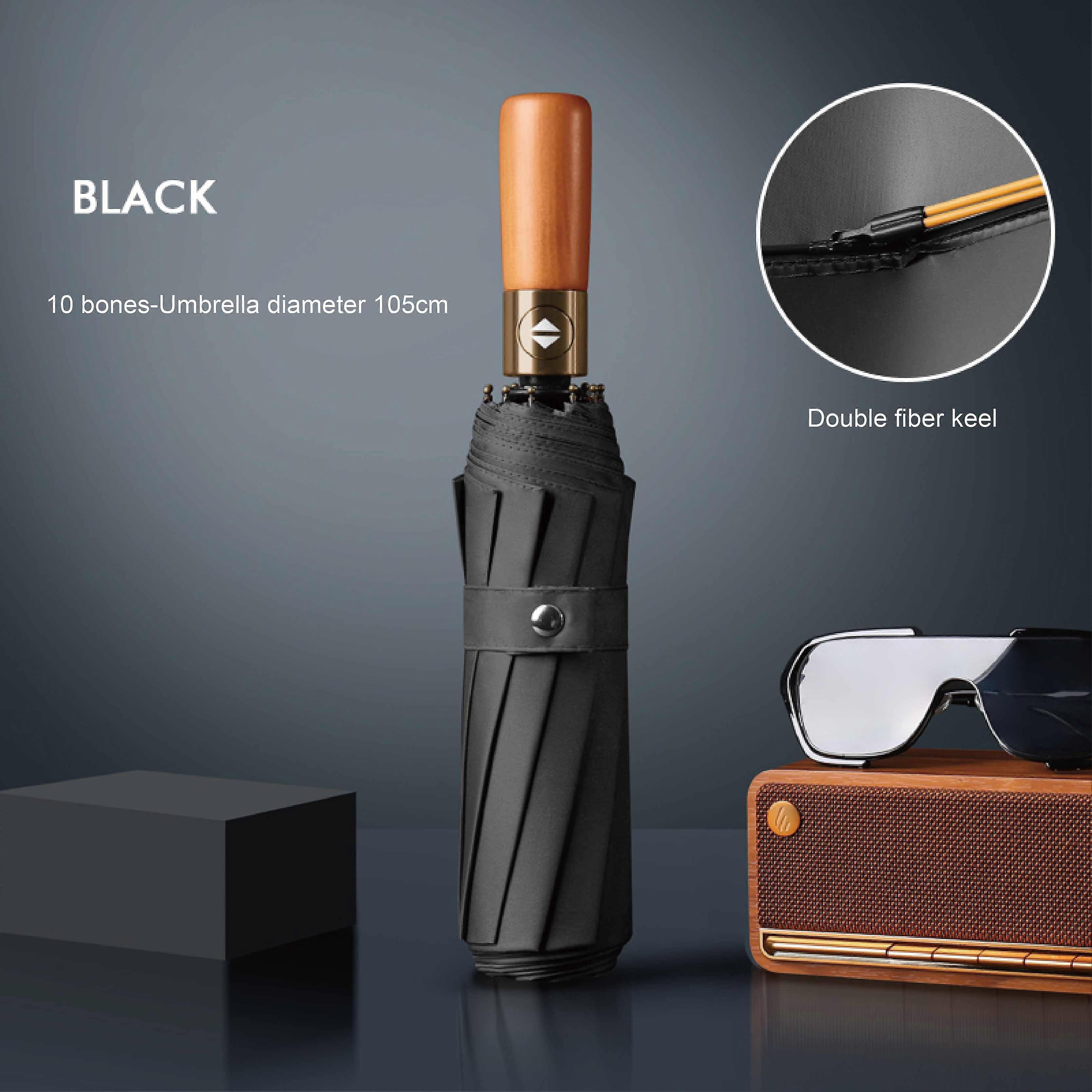 10 bones retro solid wood handle fully automatic umbrella sun protection and ultraviolet folding sun umbrella for men and women