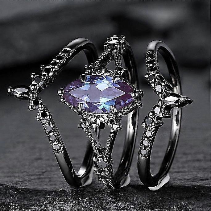 Delicate Women Rings Black Color Oval Round Blue Black Stone Rings Set Party Accessories Gift