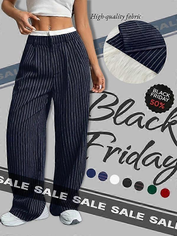 Women's All Over Striped Print Pocket Wide Leg Pants, Casual Comfy Trousers for Spring & Fall, Women's Bottoms for Daily Wear