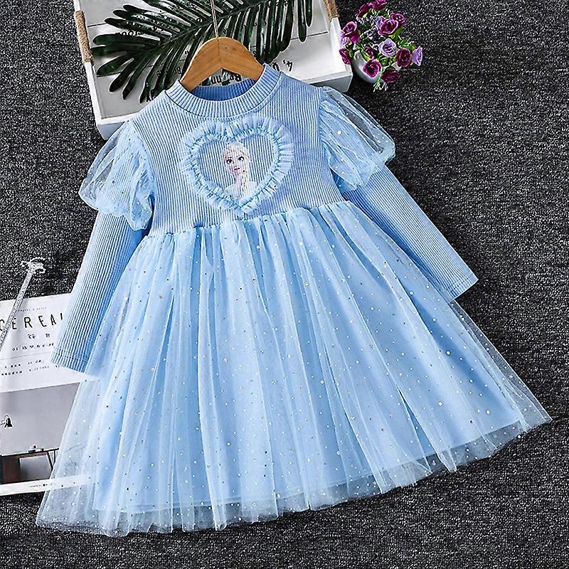 Elsa Princess Dress Girls Dress Spring Autumn Kids Dress Gauze 2024 New Long-sleeved Children Frozen Birthday Party Dress