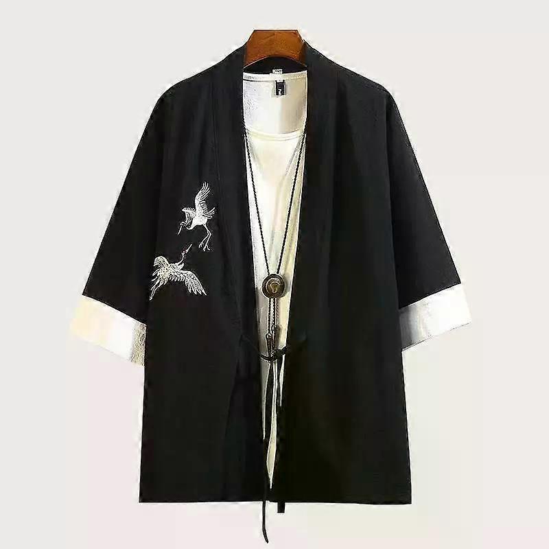 Ancient Men's loose Cotton Hemp Embroidery Jacket Crane Dragon Pattern Hanfu