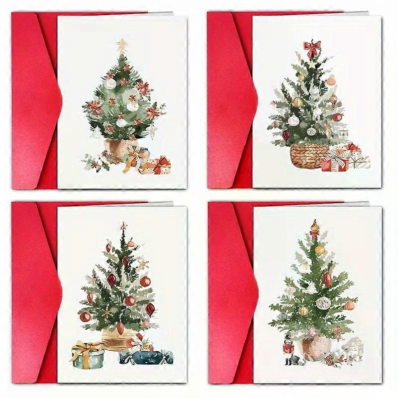 4pcs, Christmas cards and envelopes, Christmas tree cards, the best Christmas gift cards for family friends