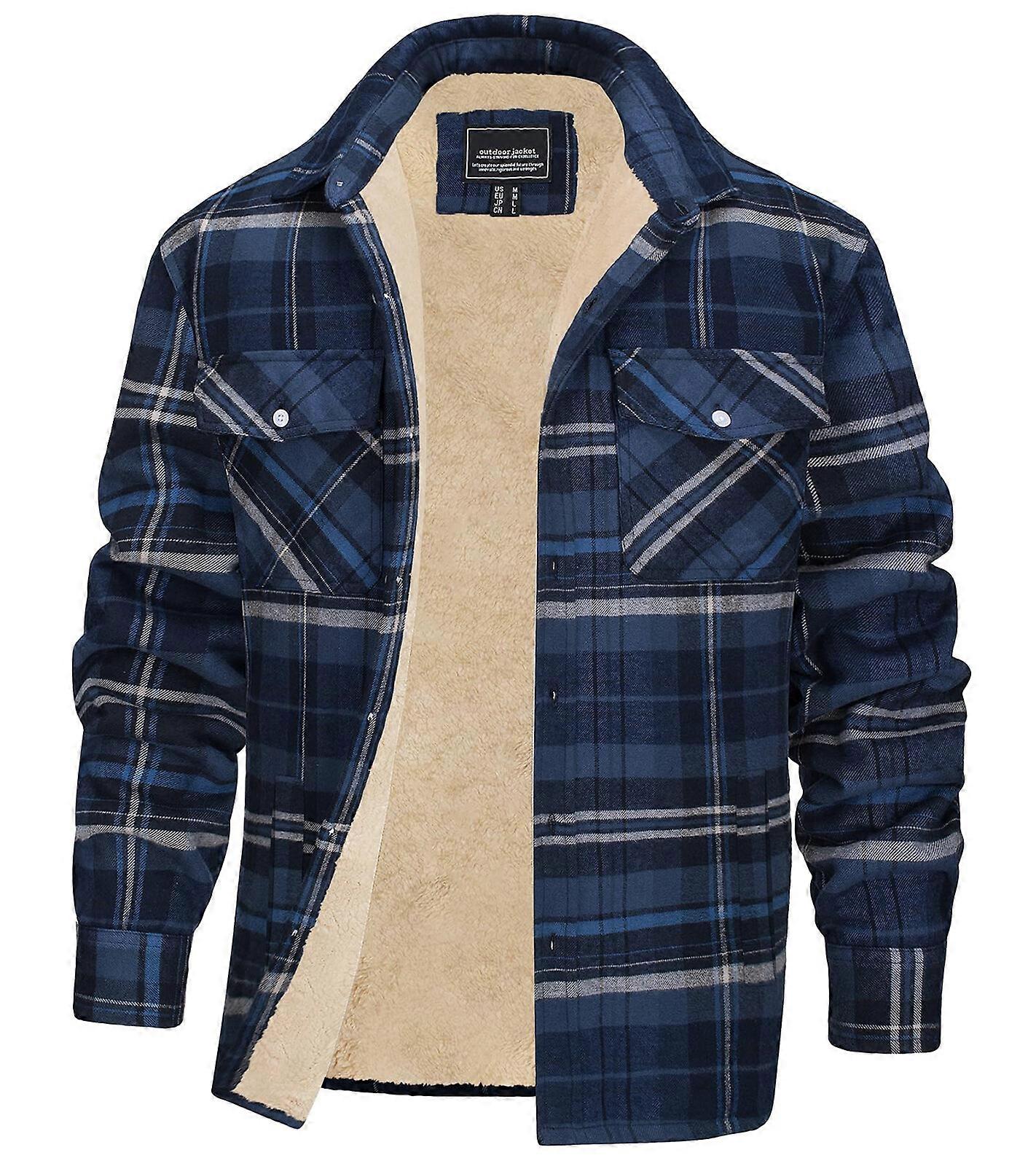 Men's Flannel Shirt Jacket Thick Fleece Lined Coats Winter Plaid Sherpa Jackets