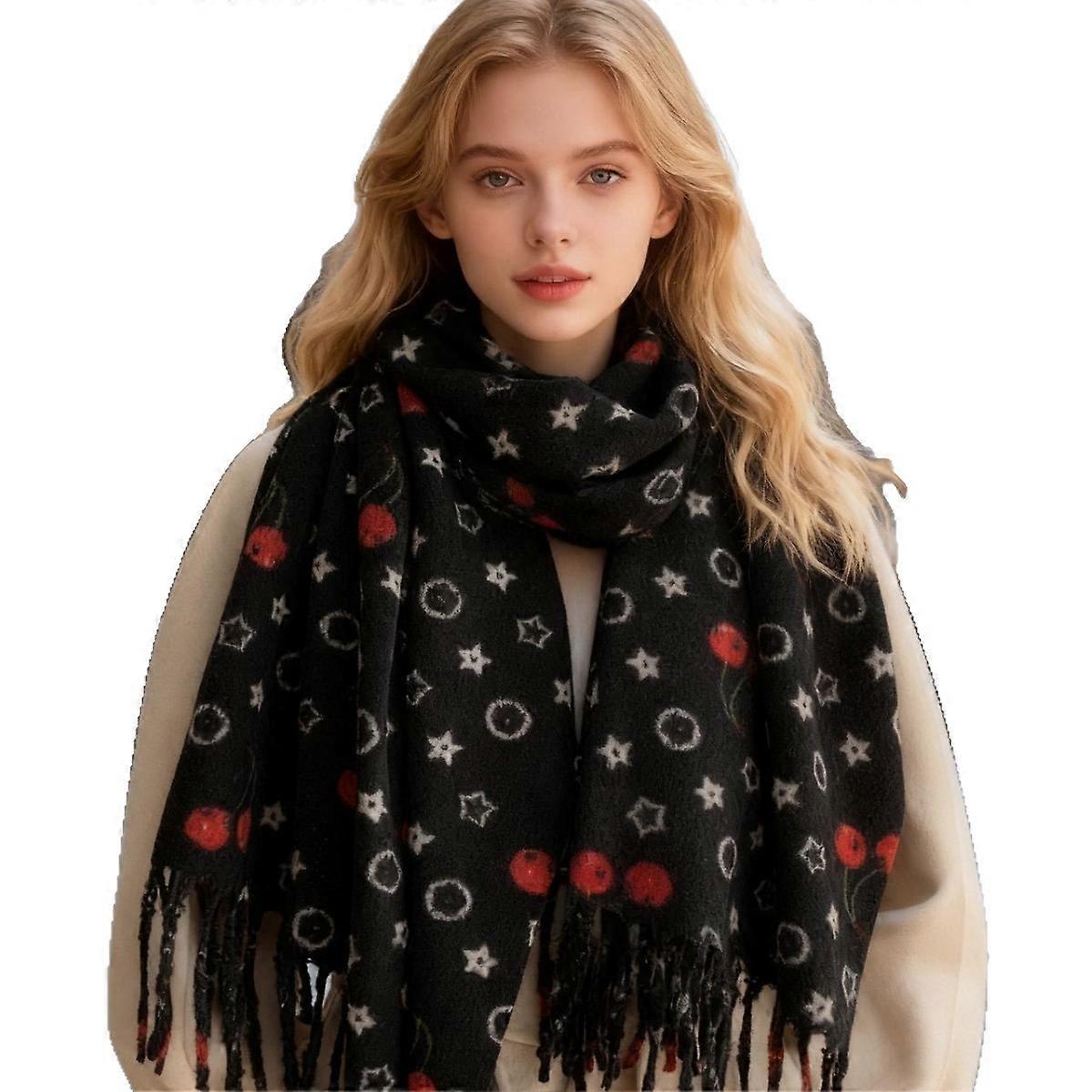 2026 Women Autumn Winter Faux Cashmere Shawl Warm Jacquard Scarf Versatile Blanket Use Neck Protection New Cherry Style
