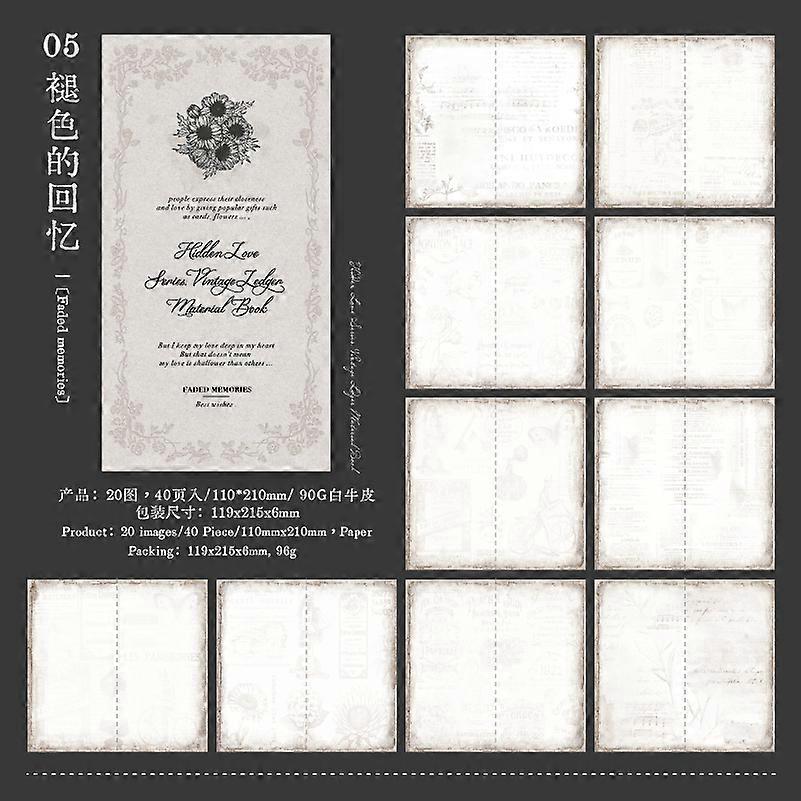 Journal GO 40sheets Aesthetic Material Paper Memo Pads Hidden Love Junk Journal Scrapbooking Cards Retro Background Decor Paper