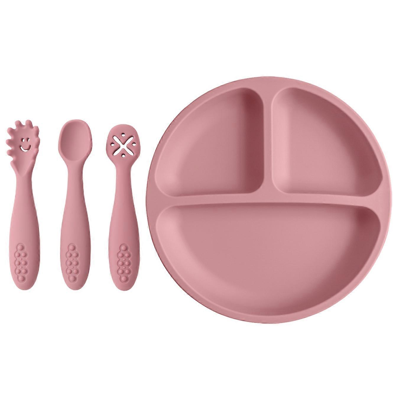 Color Kids 4PCS Silicone Baby Feeding Set BPA Free Suction Plate Training Utensils Easy Clean Toddler Tableware Dish Spoon Fork