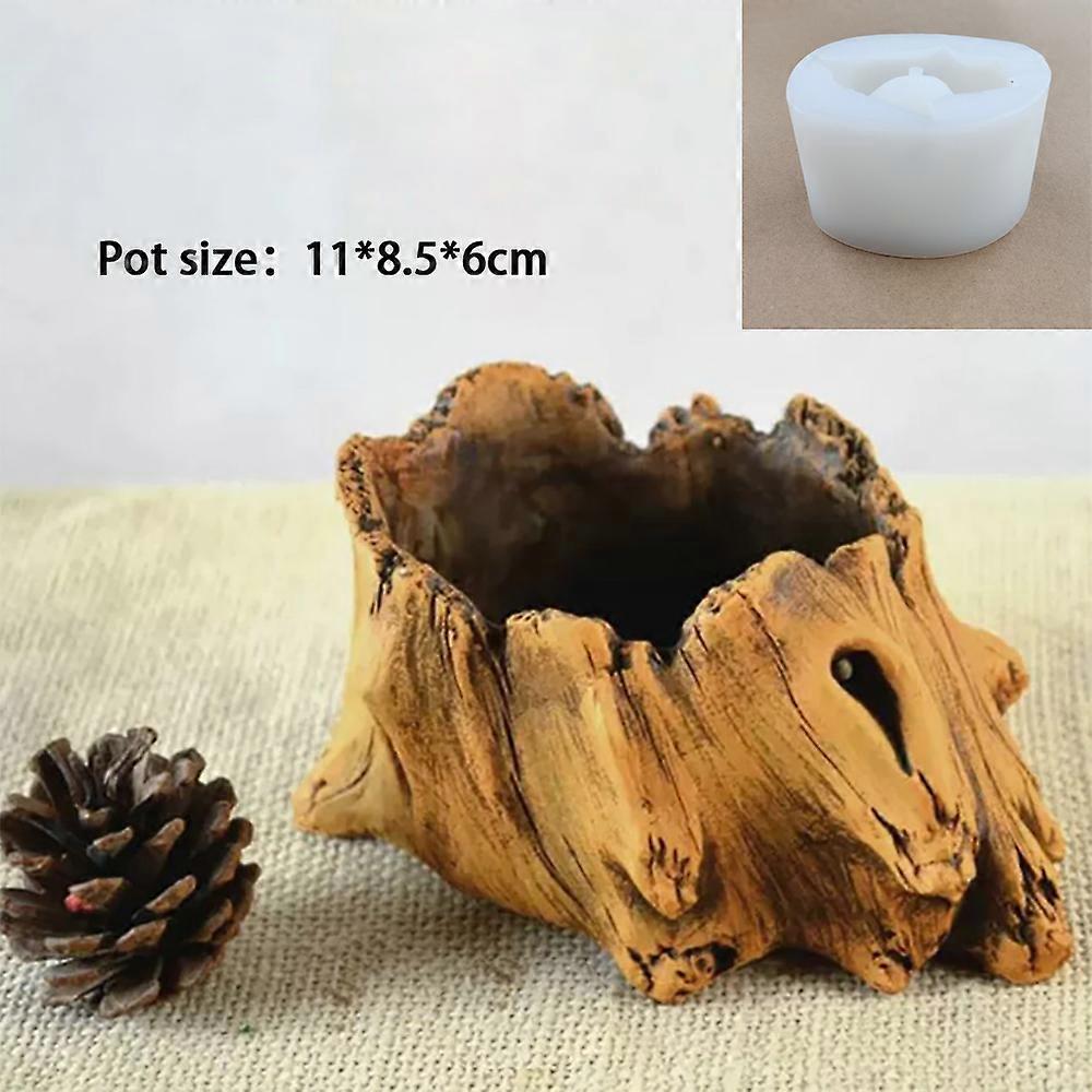 Concrete Stump Flowerpot Silicone Mold Wood Grain Design Cement Pot Garden Planter Mold DIY Handmade Crafts