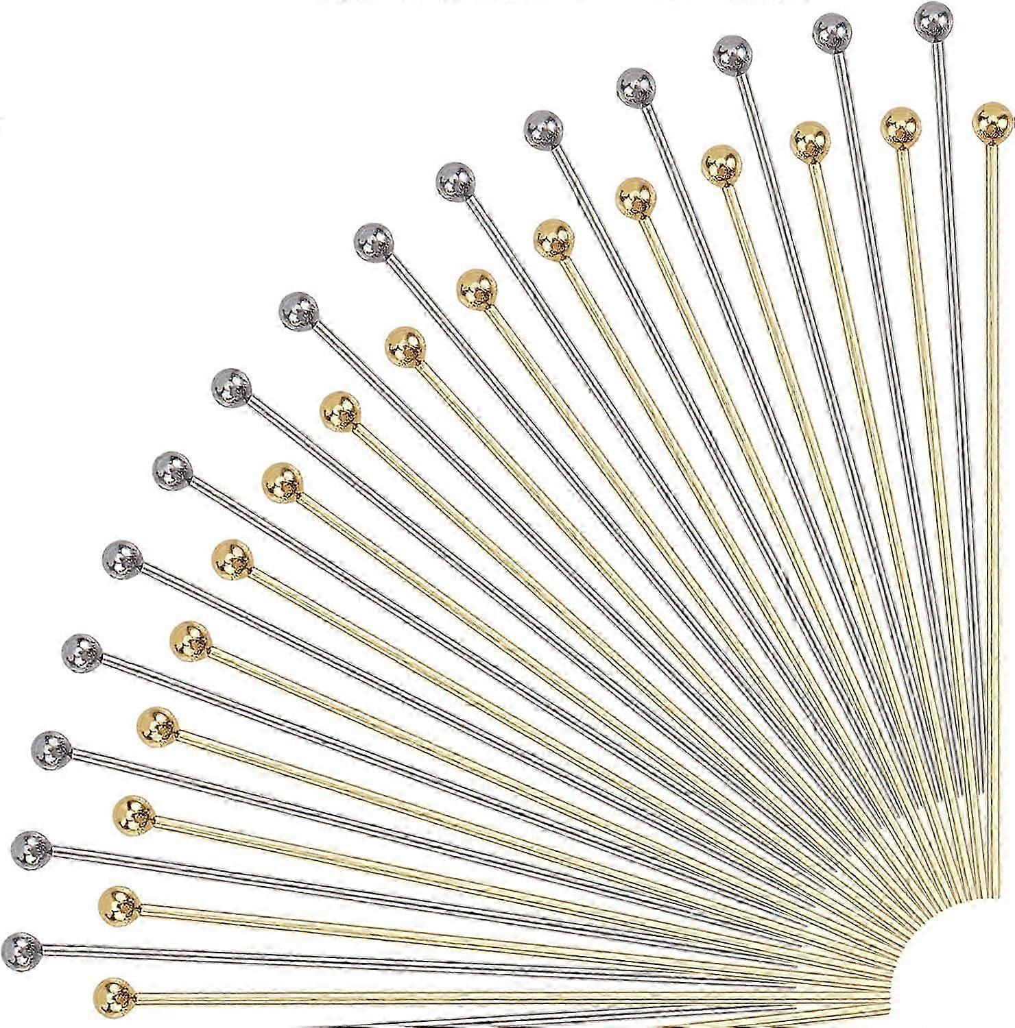 200 pcs Straight Pins 40mm 304 Stainless Steel Head Pin Findings for Earring Pendant Jewelry Making Golden/Silver A-C Edition 1212