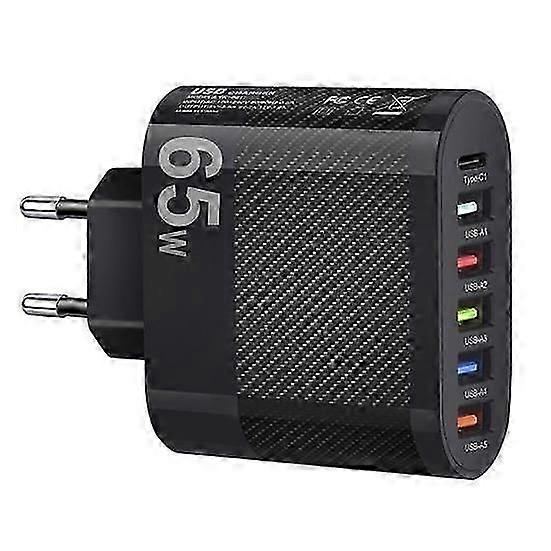 Universal Travel Adapter with 6 Ports 65W 5USB/Type-C Fast Charging Intelligent Shunt Technology Multi-protection Efficient EU Plug Wall Charger Editi