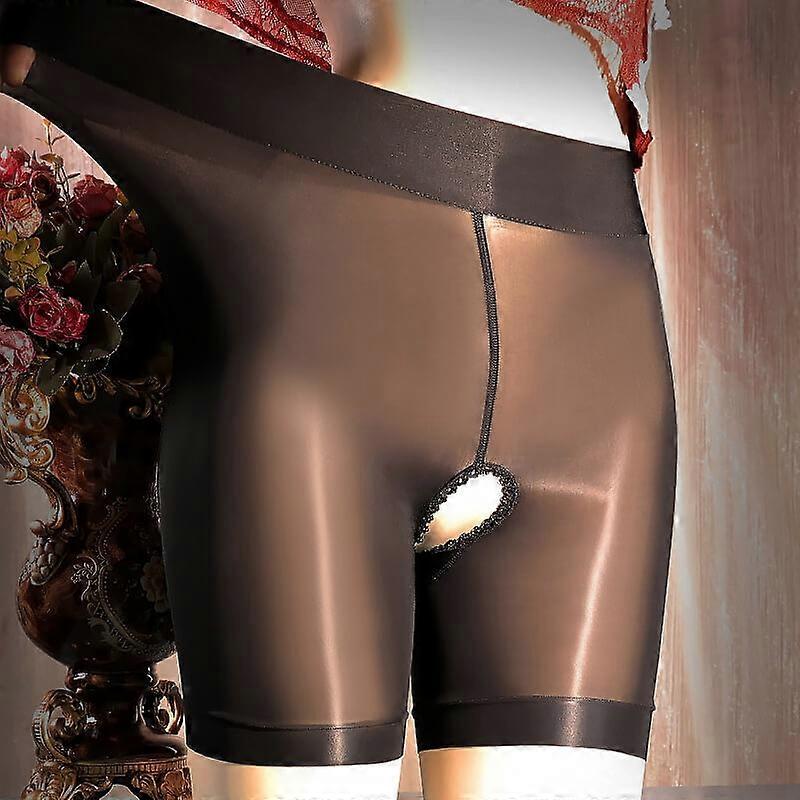 Women's Oil Shiny Glossy Panties Underwear See Through Open Crotch Boxer Shorts