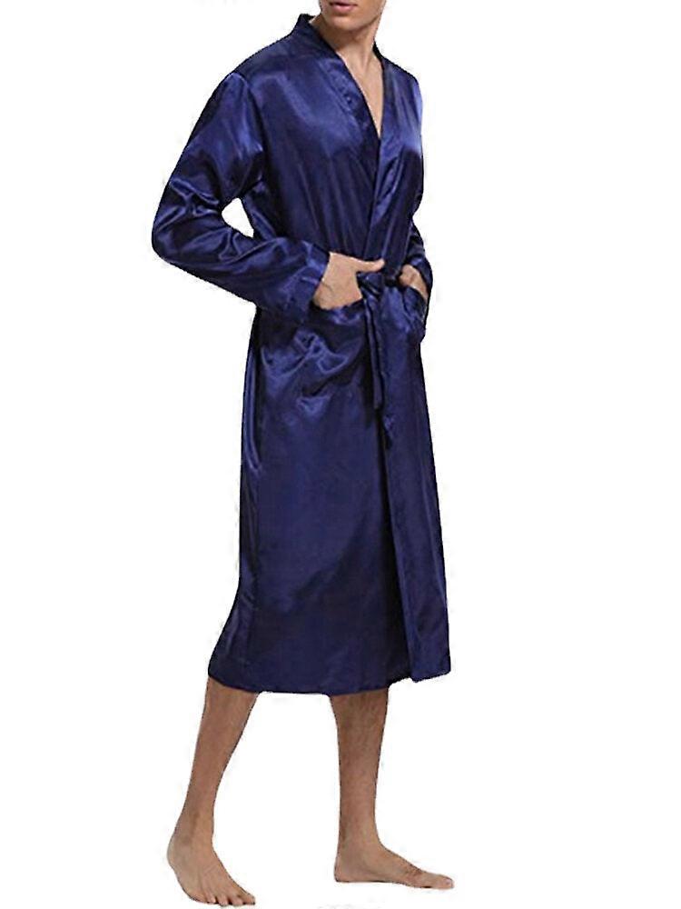 Description:  Clothing Length: Mid-long.  Item Type: Sleepwear Robe.  Thickness: Regular.  Gender: Men.  Fit Type: Loose.  Style: Casual, Home.  Decoration: Pockets.  Material: 100% Polyester.  Pattern Type: Solid Color.  Collar: V-neck.  Season: Spring, Autumn.  Hooded: No.  Weight: 0.23kg.  Closure Type: Drawstring. Color: Navy, Black.  Sleeve Length: Long Sleeve.  Occasion: Leisure, Home.  Cuff Type: Straight Sleeves.     Package included:  1 * Robe