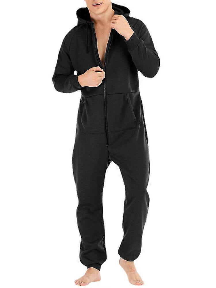 Men Mulit Pockets Thicken Loungewear Zip Down Jumpsuit Plain Hooded Pajamas