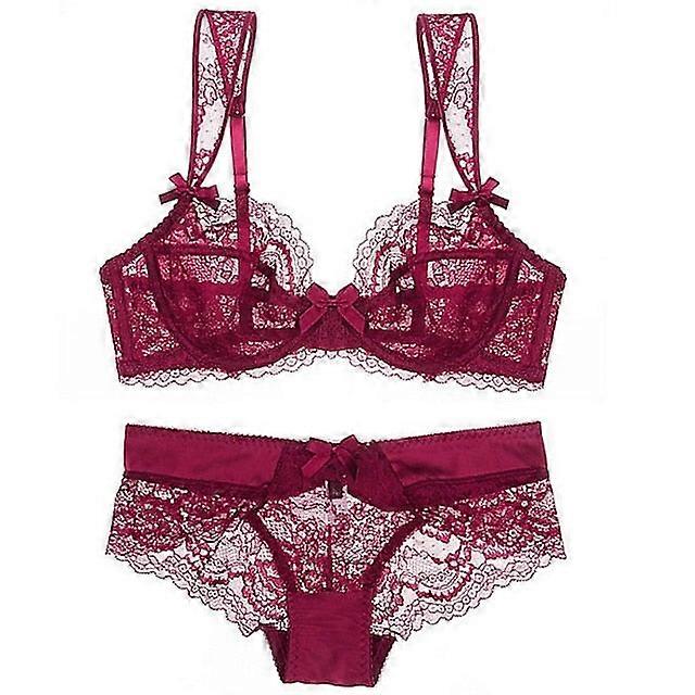 Women's Underwire Bras Padless 3,4 Cup Lace Pure Color Hook & Eye Polyester Sexy 1 Set Black Purple , Plus Size , Bra & Panty Set , Plus Size