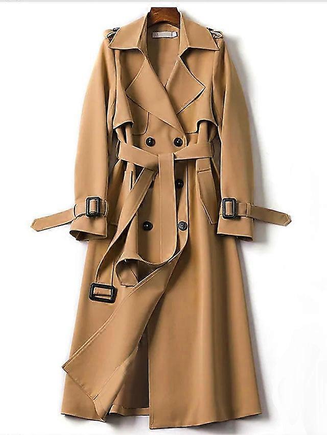 Women's Trench Coat Fall Double Breasted Lapel Long Coat With Belt Winter Warm Windproof Jacket With Pockets Maillard