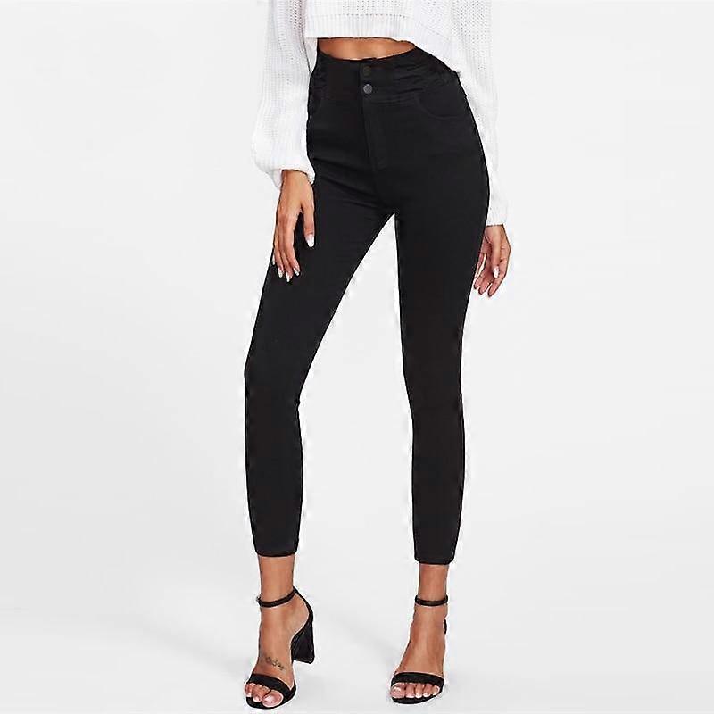 Black Single Breasted Skinny Pant Women Spring Casual High Waist Jeans Ladies Workwear Elegant Basic Crop Jeans Item Type: Jeans Length: Ankle-Length Pants Jeans Style: Pencil Pants Fabric Type: Softener