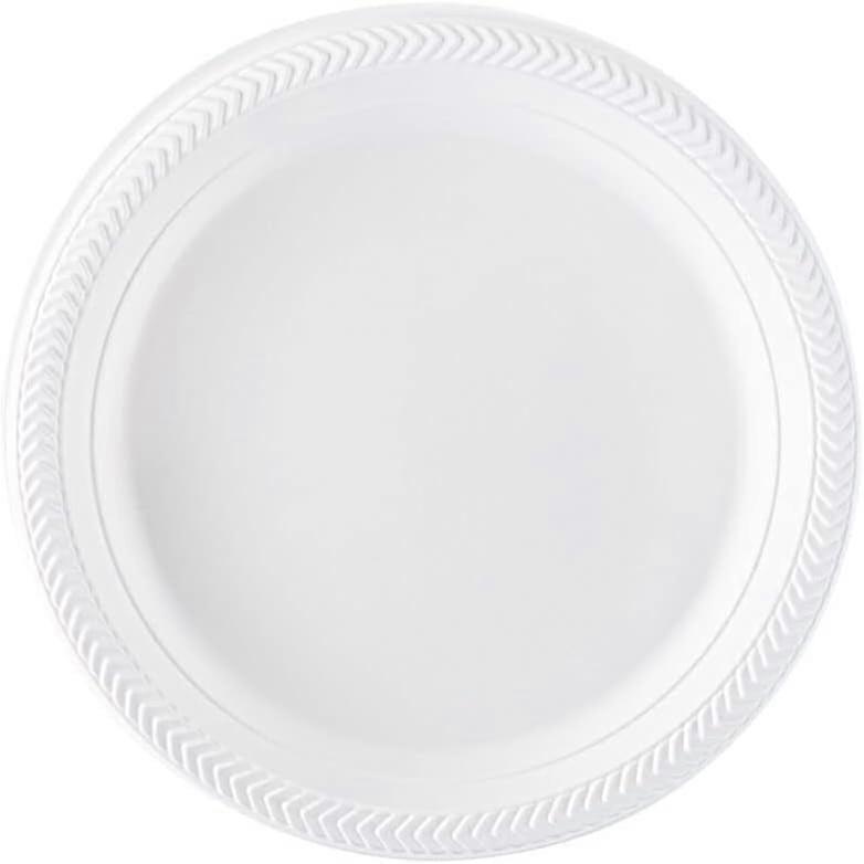 Disposable 7" Round White Plastic Plates - Compatible with China Like Party Plates, Heavy Duty Dessert & Salad Plates for Weddings (400)