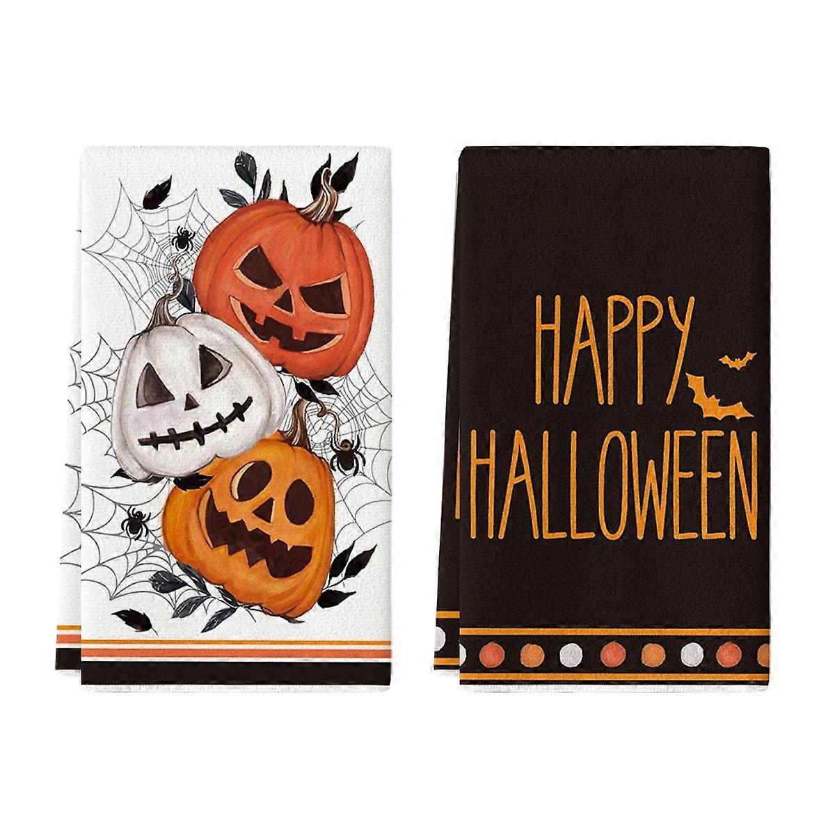 Sm:)e Spider Web Jack-O'-Lantern Pumpkin Happly Halloween Kitchen Dish Towels 18x26 Inch Set of 2
