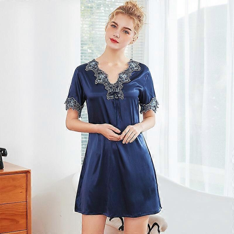 Satin Sexy Short Sleeve Lace Nightdress Nightgowns Sleepshirts Sleepwear Women