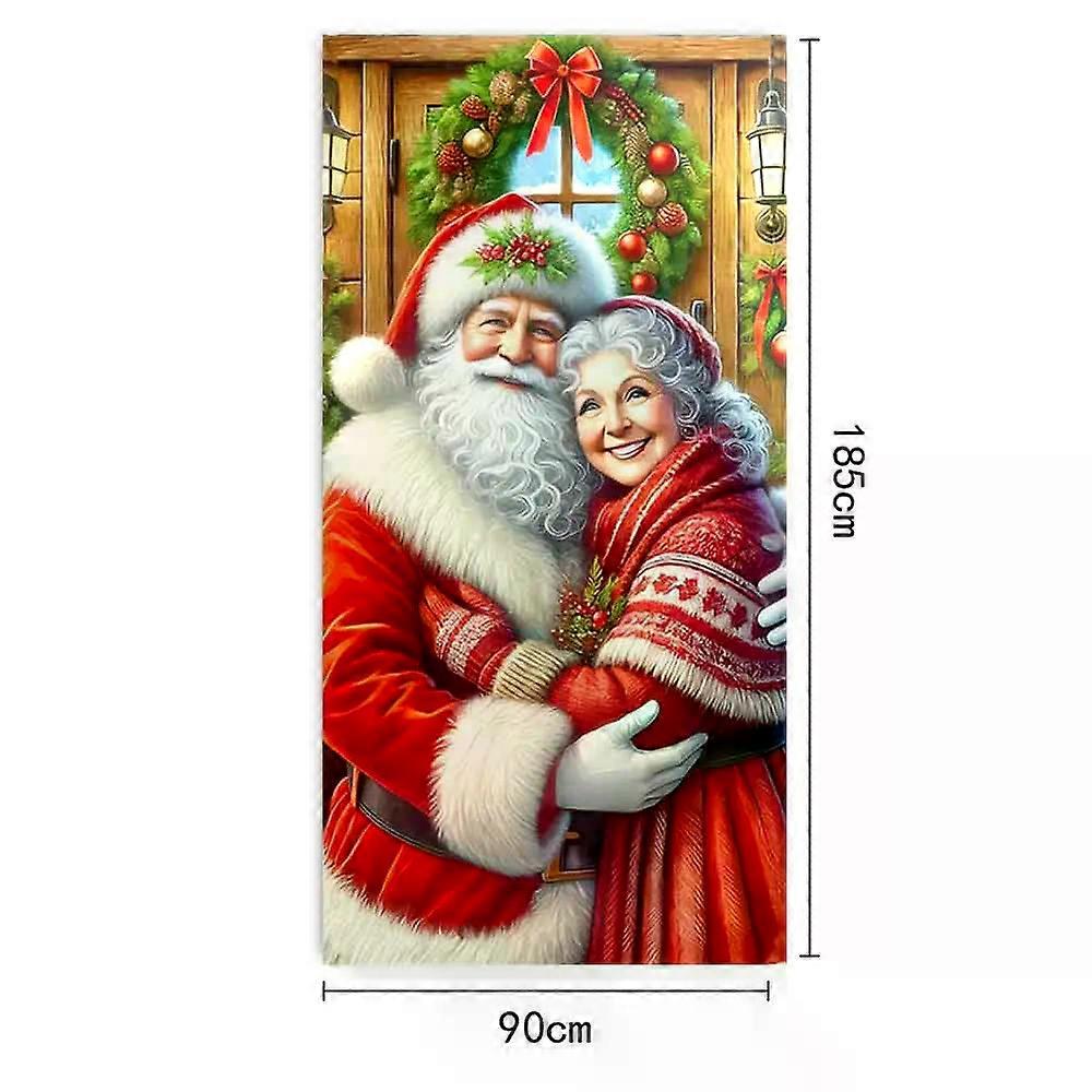 Large Santa Claus Christmas Door Cover 2025 Xmas Outdoor Decoration Funny Santa Hanging Backdrop for Home Porch Front Door