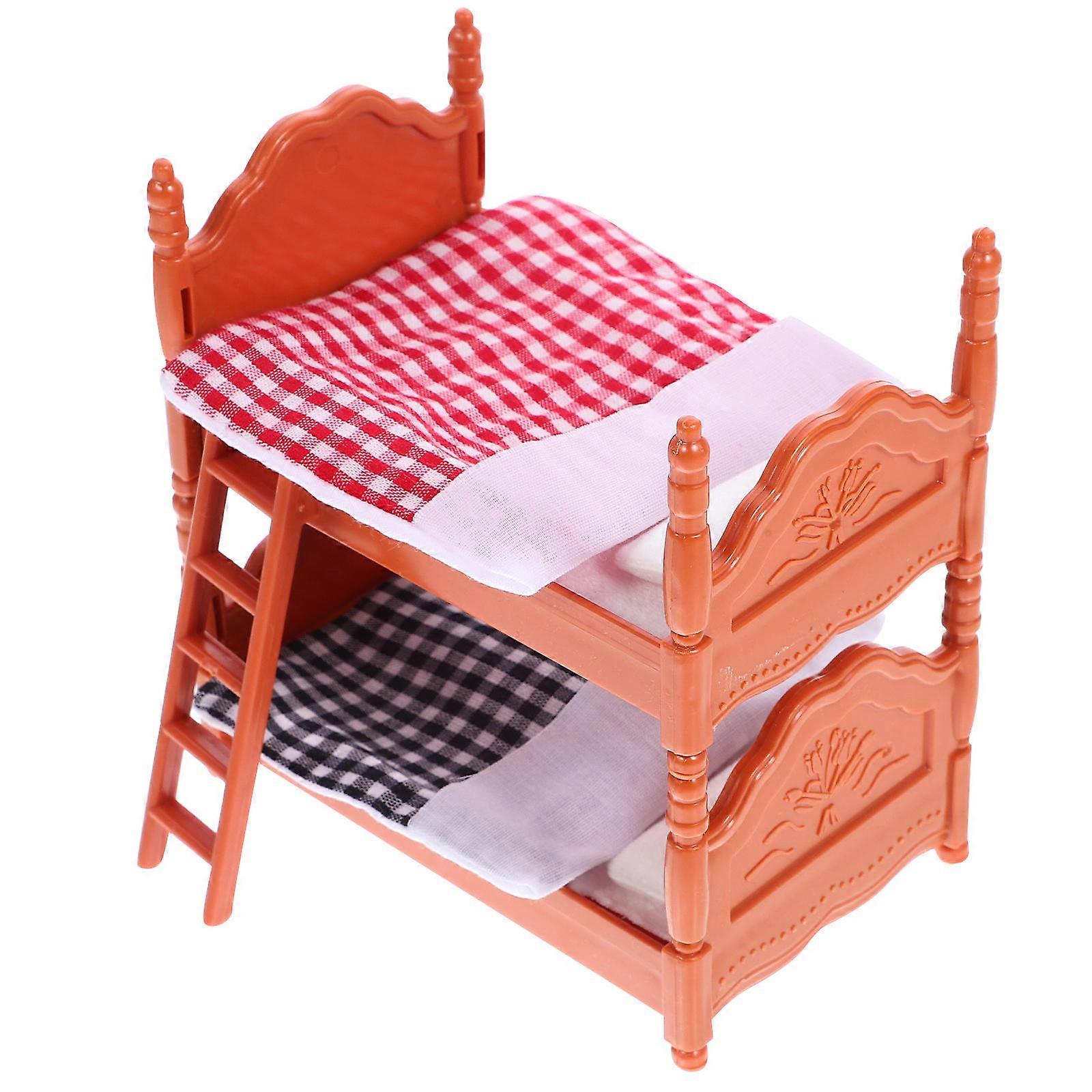 Doll Bedroom Bunk Bed Mini Model for Home 1Set with Bed Quilt Pillow
