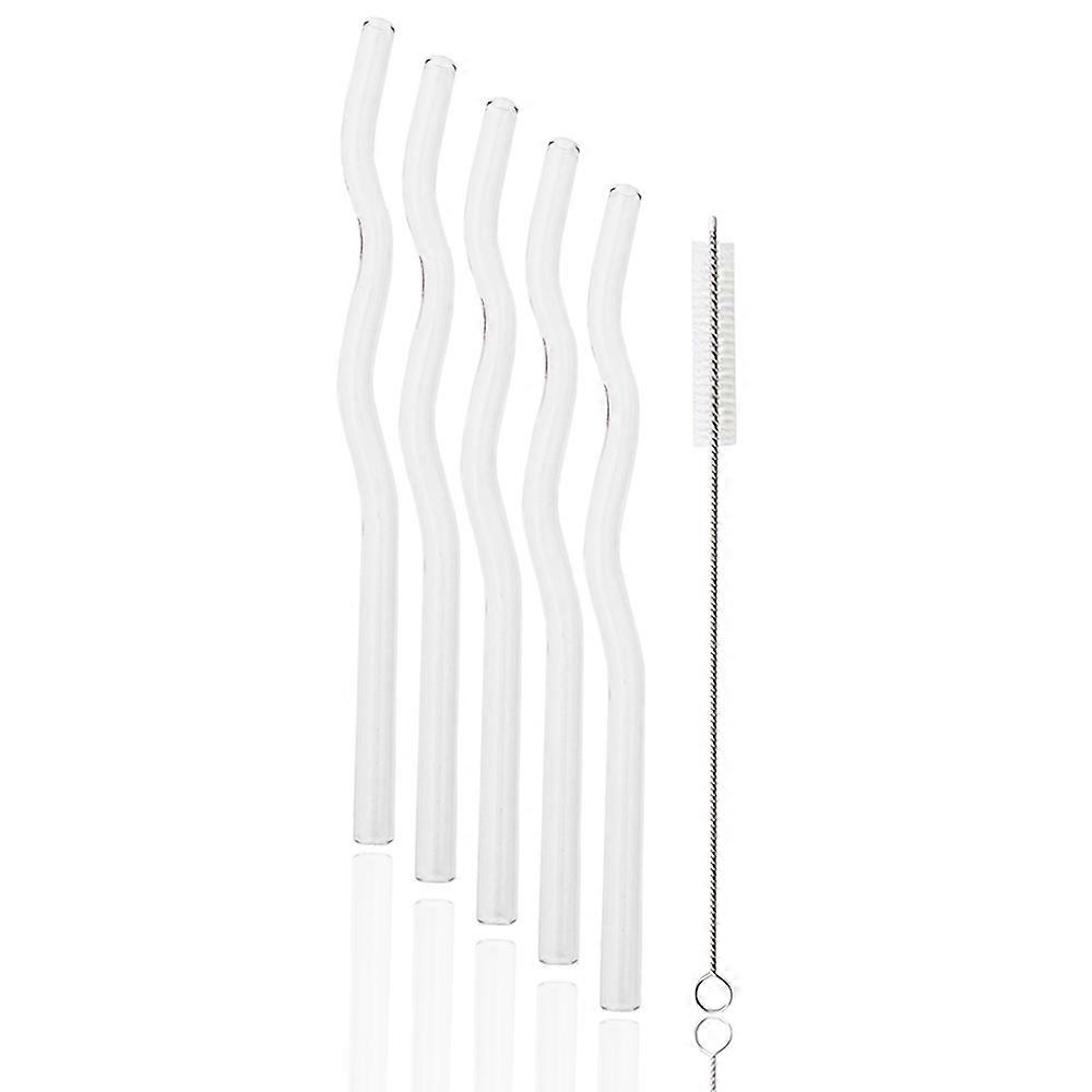 5Pcs Glass Straws Reusable Wavy Glass Straws 7.8 In*8mm Colorful Eco-friendly Glass Straws with 1 Cleaning Brush