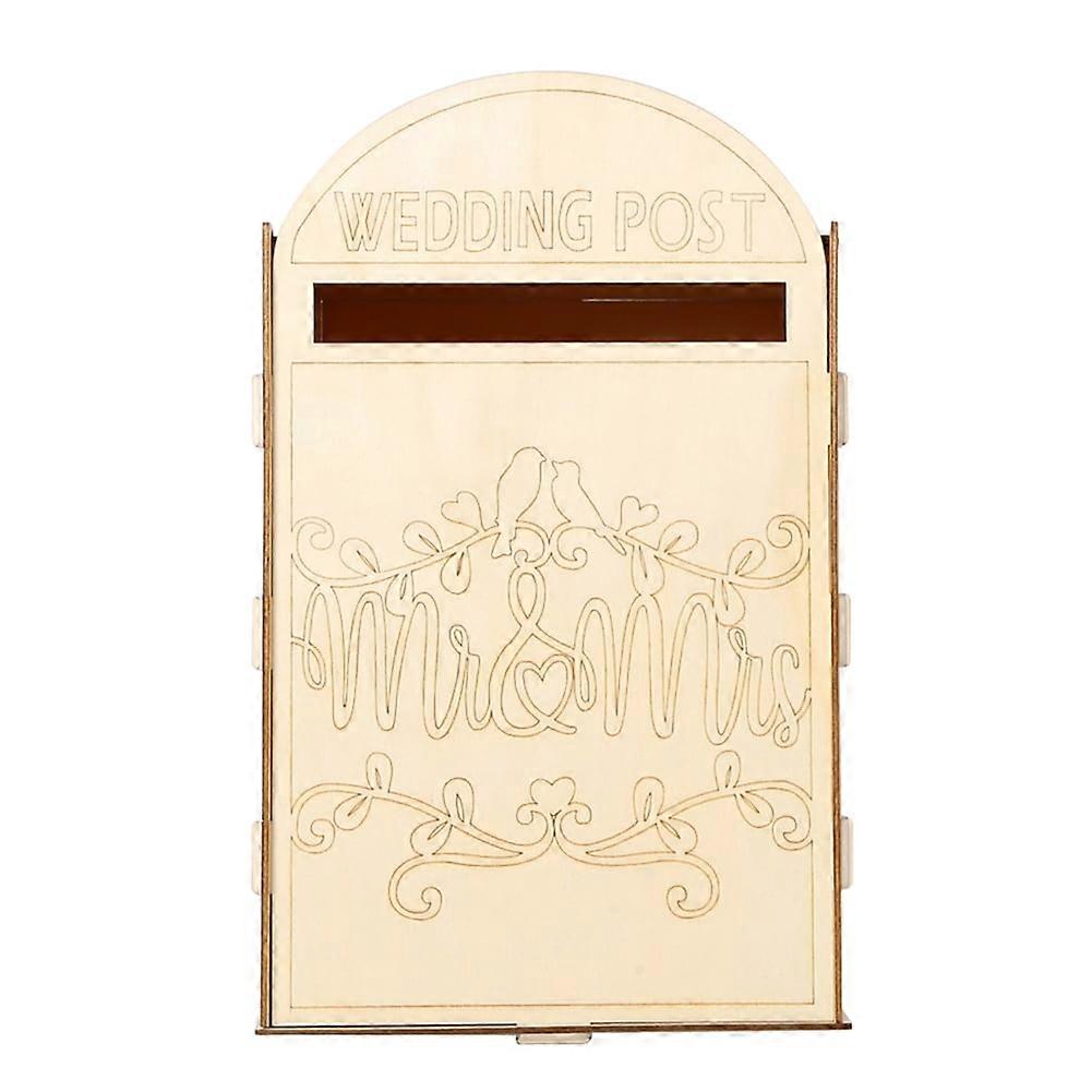 HUONA Mr&Mrs Wedding Post Box, Compatible with Rustic Wedding Decor, Wooden Gift Card Holder with Lock for Wedding, Birthday Party