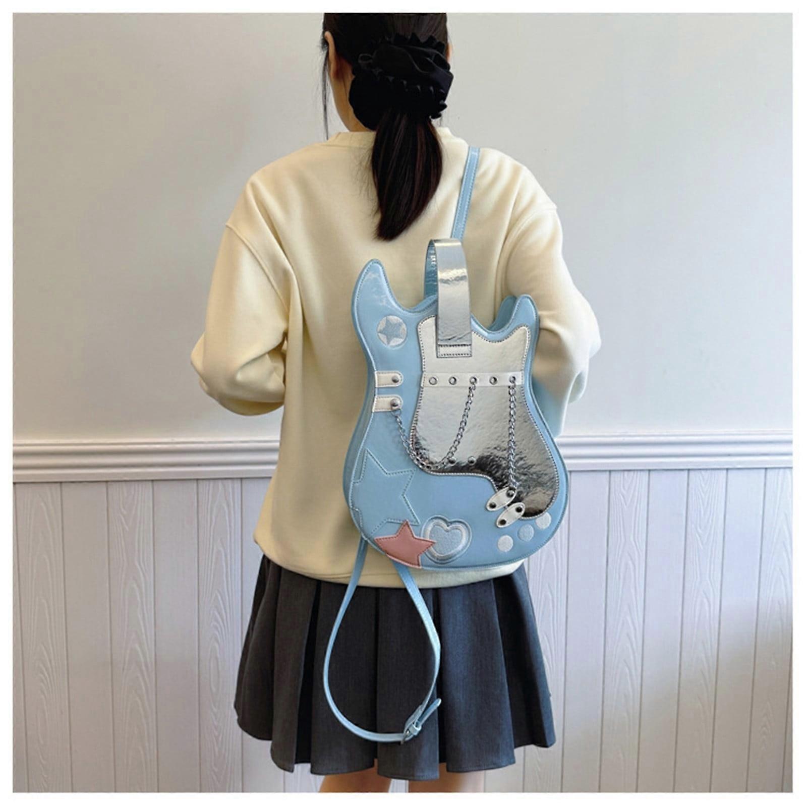 Guitar Shaped Bag Backpack Patent Leather Ladies Mini Backpack Sewing Thread Purse For Women Ladies Small Size