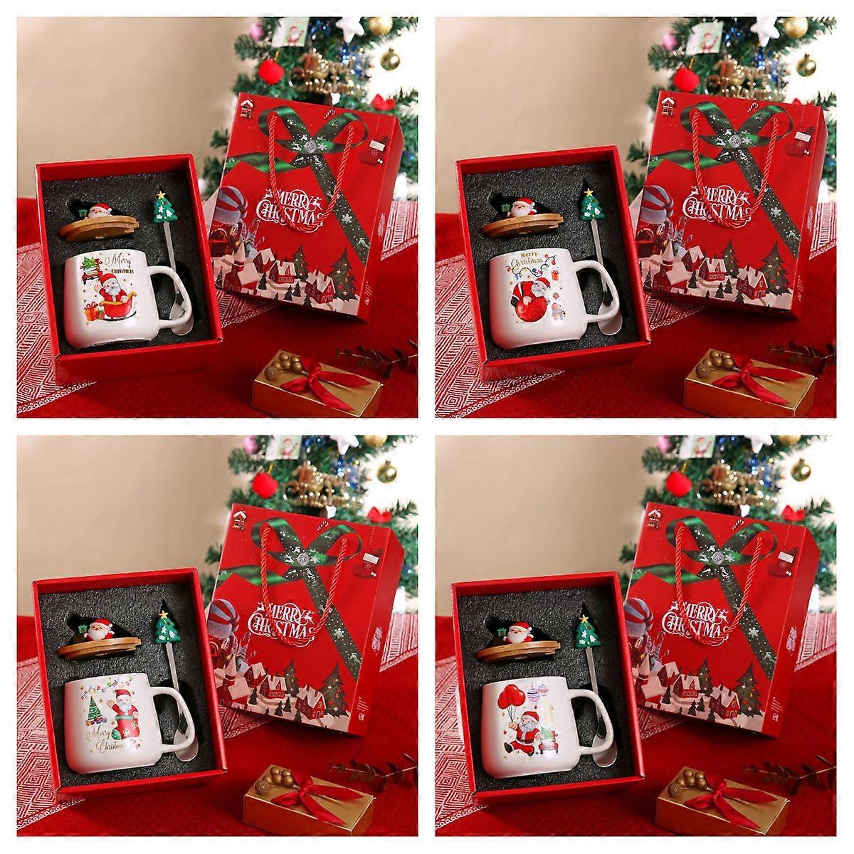 Warm Christmas! Cute Cartoon Santa Ceramic Mug Gift Set, Wooden Lid, with Spoon, Holiday Favor, Choice for Friends/Family/Lover!