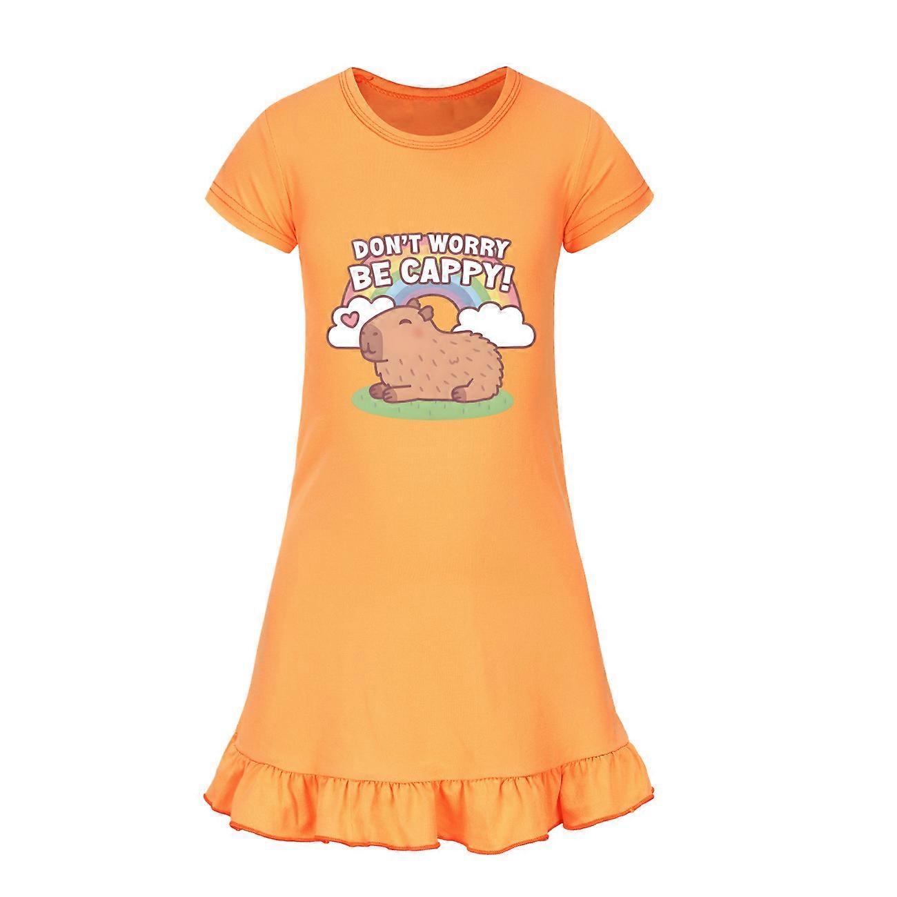 Funny Copybara Clothes Kids Cartoon Capibala Dress Baby Girls 2025 Summer Casual Dresses Children Comfort Knee-length Nightgowns