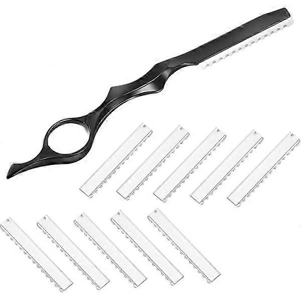 11 Pieces Barber Razor Hair Thinning Comb Cutting Razor Comb with Replacement Stainless Steel Razor Blades for Home and Salon Use
