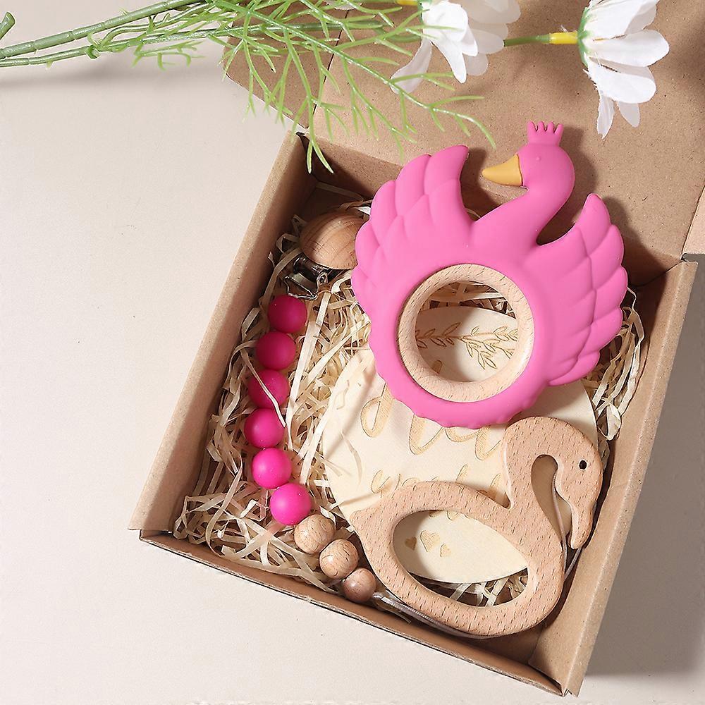 4pcs swan teether Baby bibs Gift Set With flamingo Teething Pacifier Chain Rattle New Born Baby photography props Set