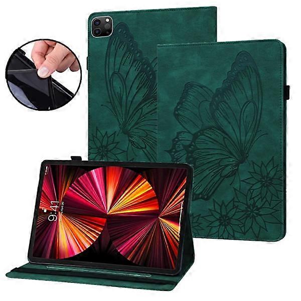 Compatible with iPad Pro 12.9 2022 / Air 13 2024 / 2025 Large Butterfly Embossed Leather Case - Tablet Cover Green