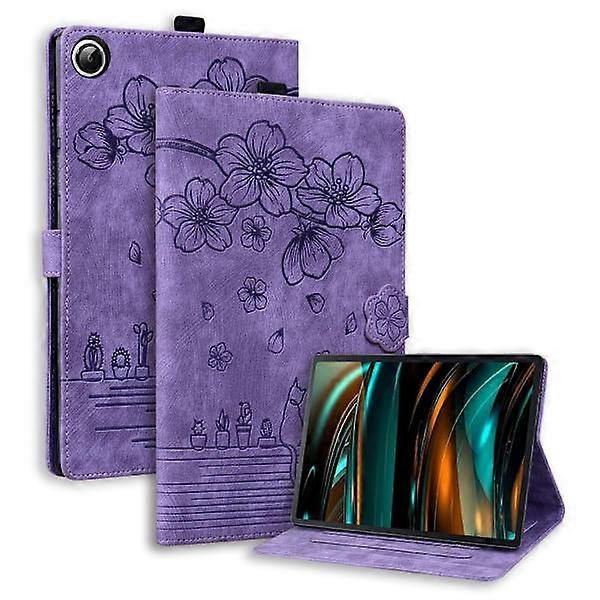 Compatible with Samsung Galaxy Tab A8 X200 Cartoon Sakura Cat Embossing Leather Case Purple