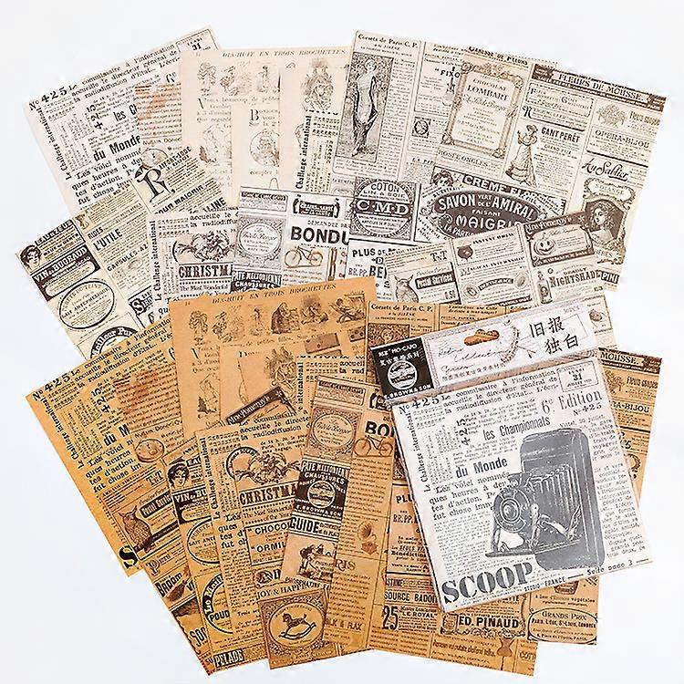 Yoofun 30 sheets Vintage Material Paper for Scrapbooking Journal Diary Collage Junk Background Decoration Retro Stationery