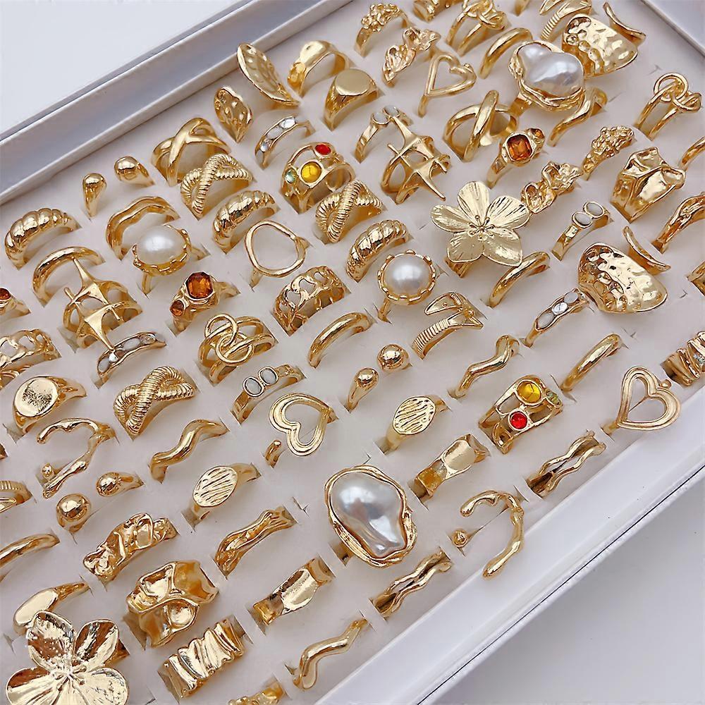 20Pieces Fashion Elegant Flowers Geometric Irregular Line Open Ring Set For Women Mix Style Trendy Jewelry Party Gifts