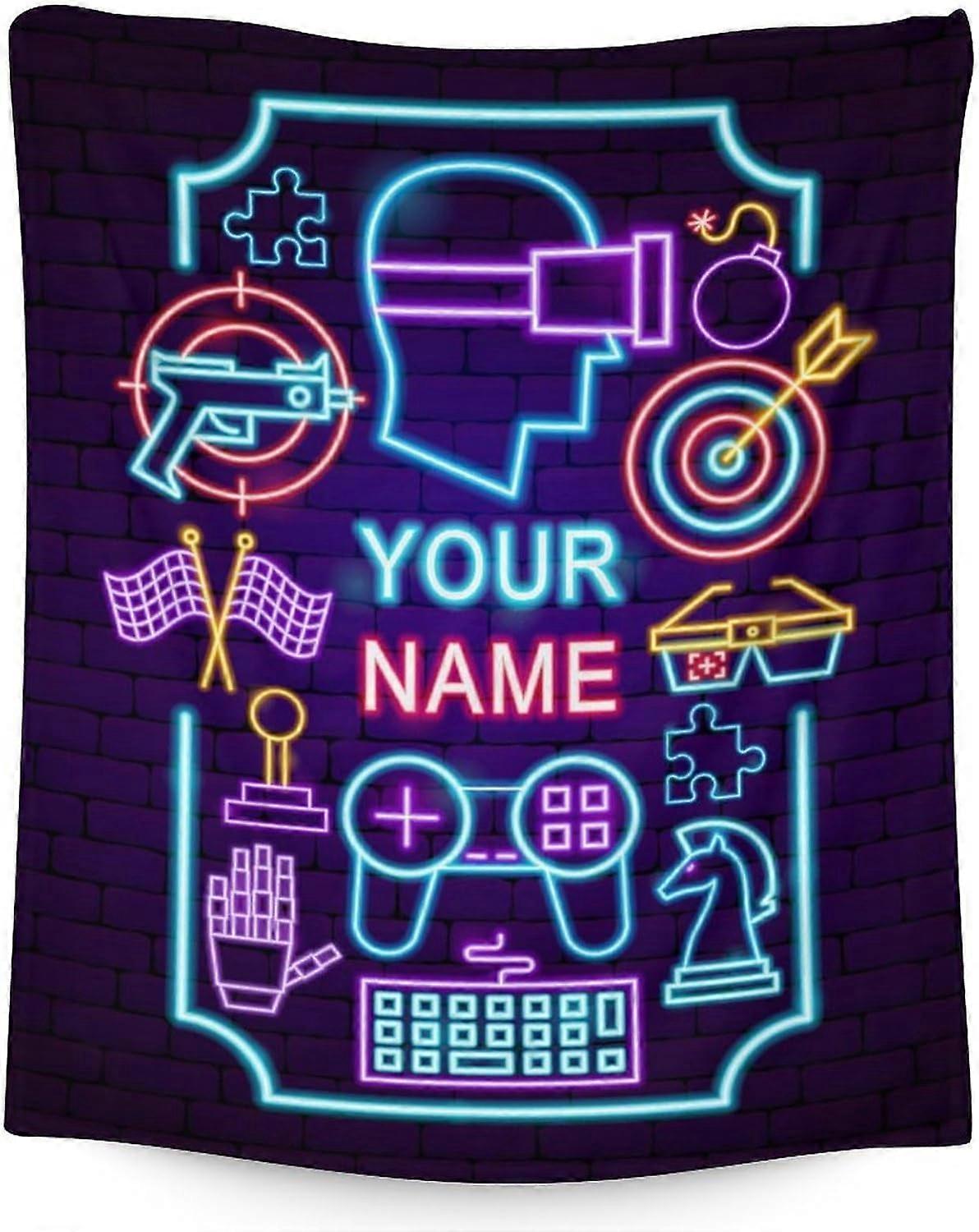 Custom Gaming Blanket 50x40" with Name - Soft Plush Warm Throw for Teens, Boys & Girls - Purple Funny Gift for Gamers