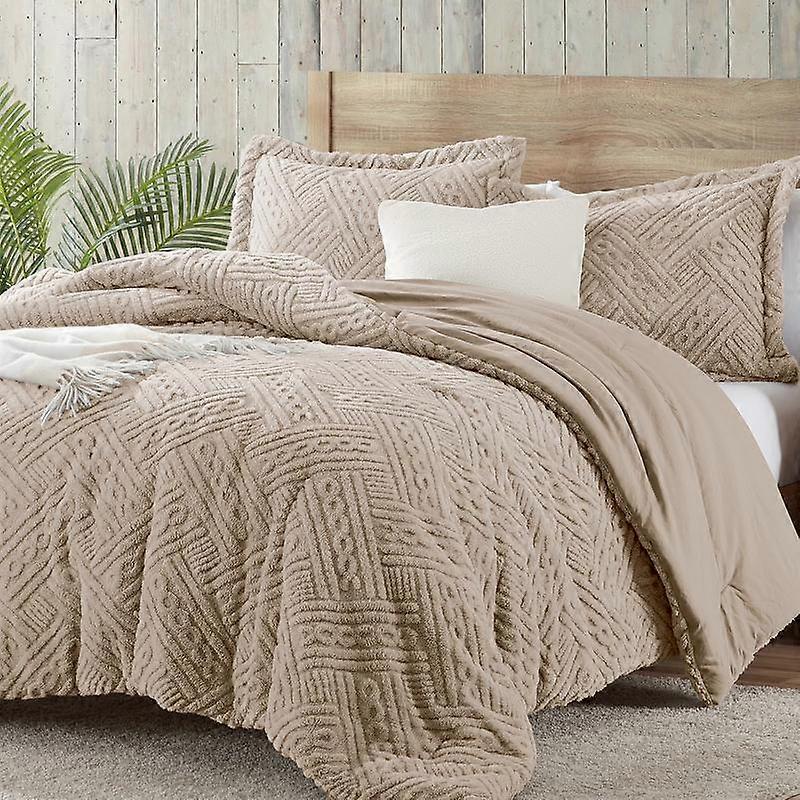 Homelike Moment Queen Size Fluffy Fleece Comforter Set 3-Piece Soft Cozy Machine Washable Beige Bedding for Christmas Winter Dorm Room Decor