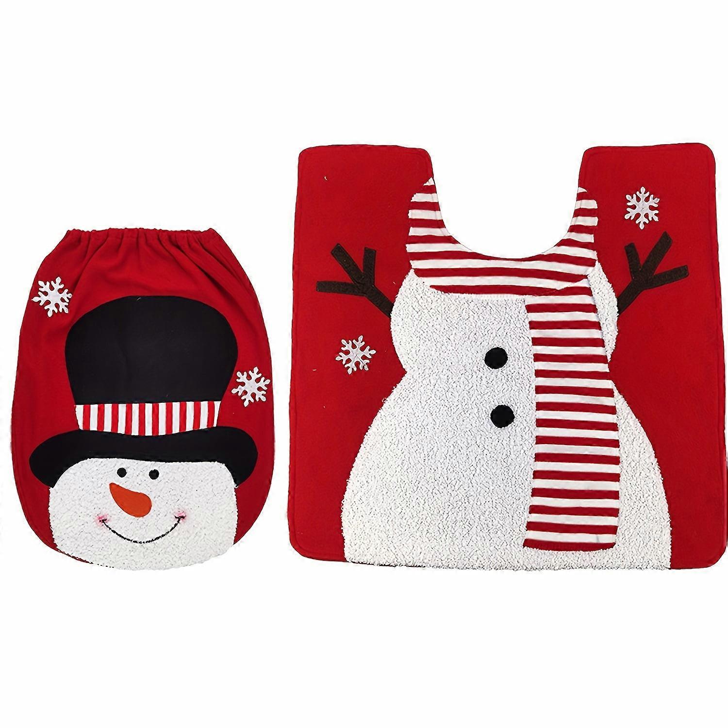 Christmas Toilet Seat Cover & Rug Set, 2-Piece, Festive Santa Reindeer Snowman Design, Fabric, Non-elec, Compatible with Xmas Trees Snowflake Decor