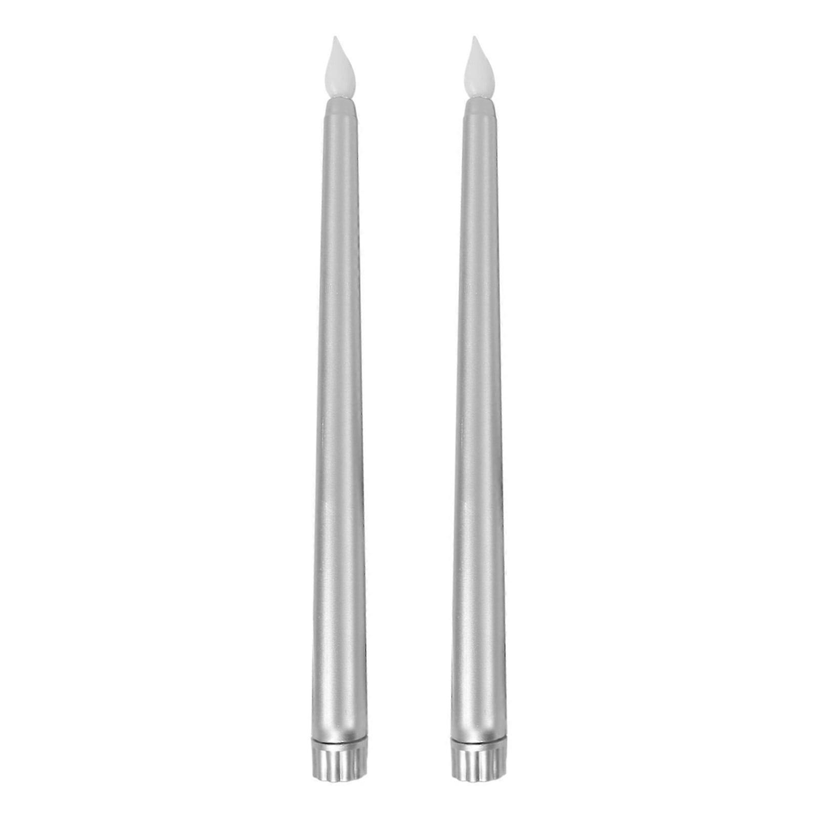 PWPSG 2-Pack Flameless LED Taper Candles Realistic Blinking Battery Operated Candles for Wedding Party Home Decor - Safe & Long Lasting Silver
