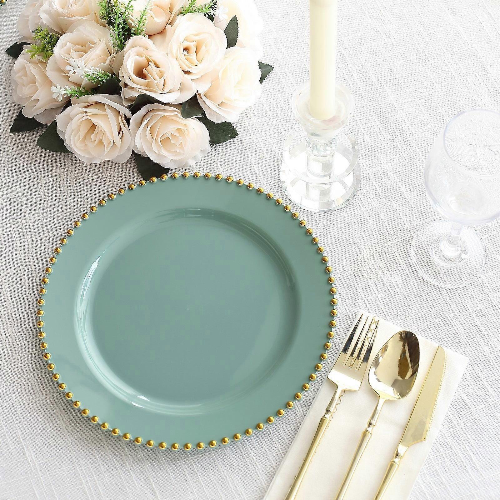 BalsaCircle 10 Round 10" Dusty Sage Gold Disposable Plastic Salad Plates Beaded Trim Party Events Home Decorations Supplies