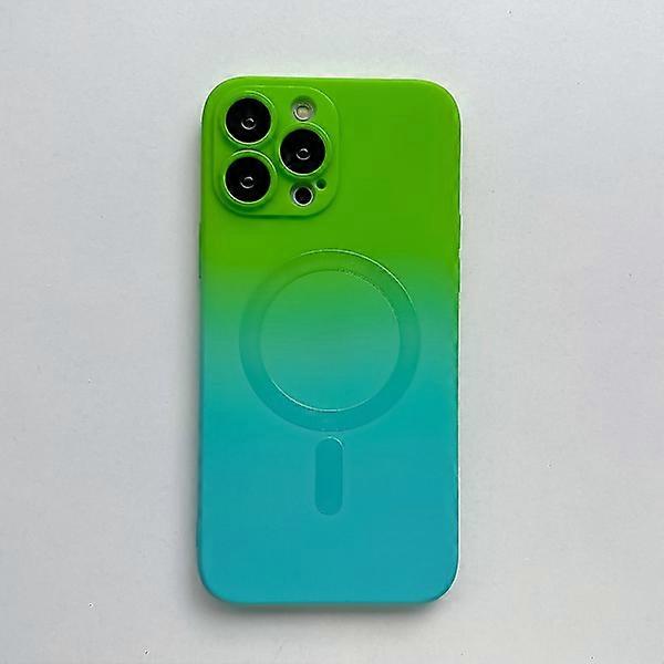 Gradient Color MagSafe Case compatible with iPhone 15 Pro Max, Soft TPU Slim Anti-Scratch Shockproof Cover Green-Blue