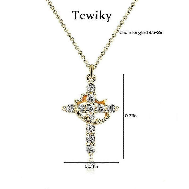 Tewiky Simple Crown & Cross Pendant Choker Easter Necklace for Women & Men & Girls Pretty Crown Cross Necklace For Daily Party Clothing Deco