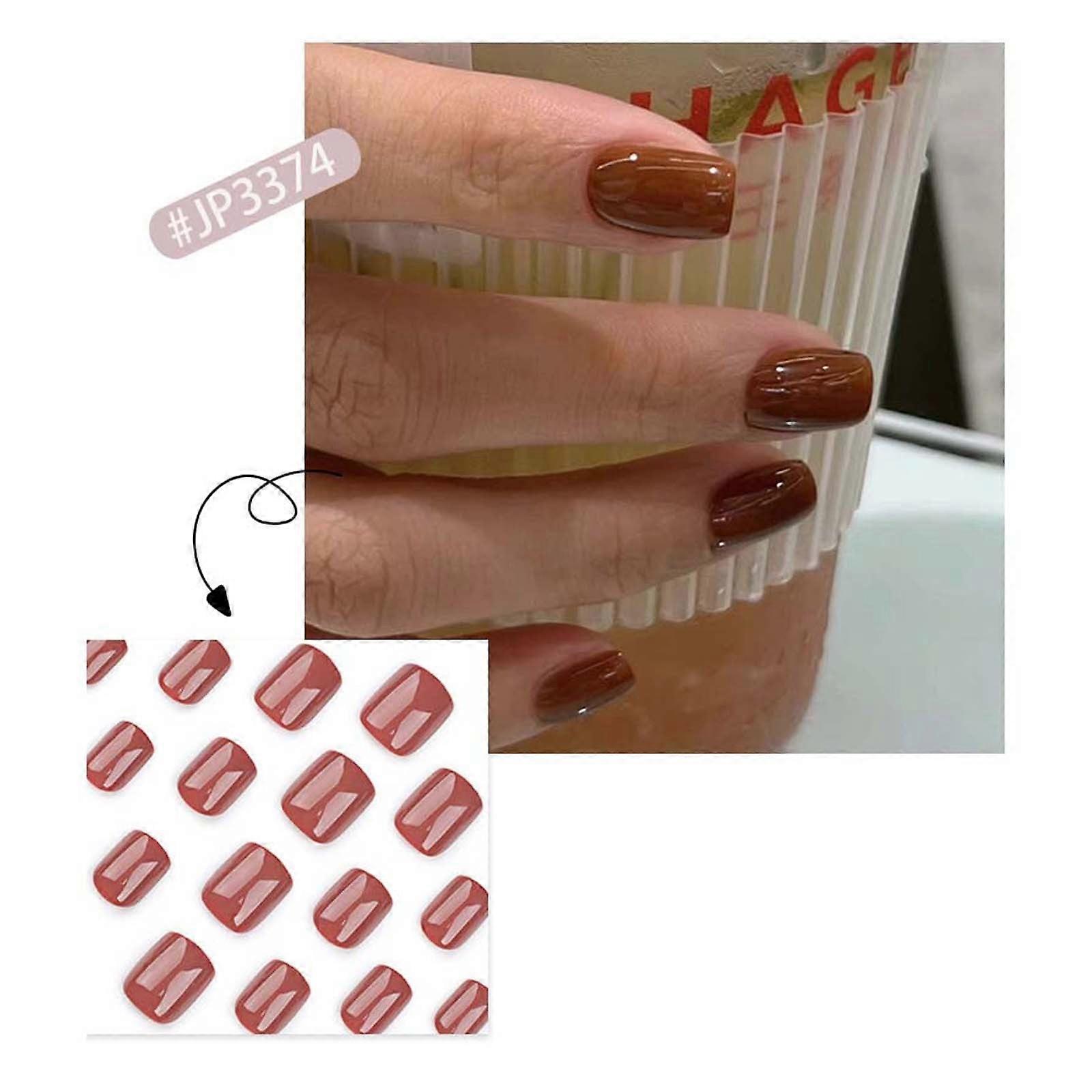 Clearance! Short Press On Nails - Soft Gel Brown Oval Fake Nails with Glue, Fit Perfectly, Reusable, 12 Sizes